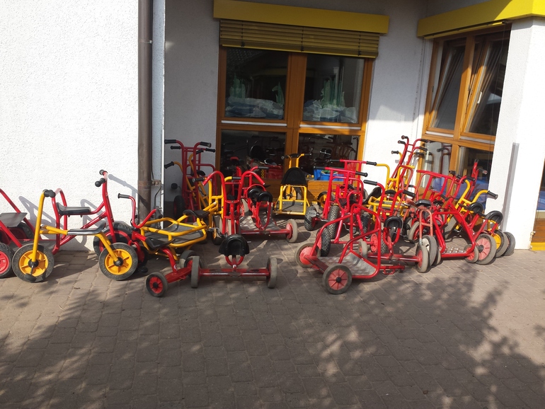 И площадки не везде прорезиненные. По моим наблюдениям в российских детских садах игрового оборудования больше чем в немецких и оно не такое унылое, как-то поярче. Под рукой просто фото не оказалось. Посмотрите в интернете.