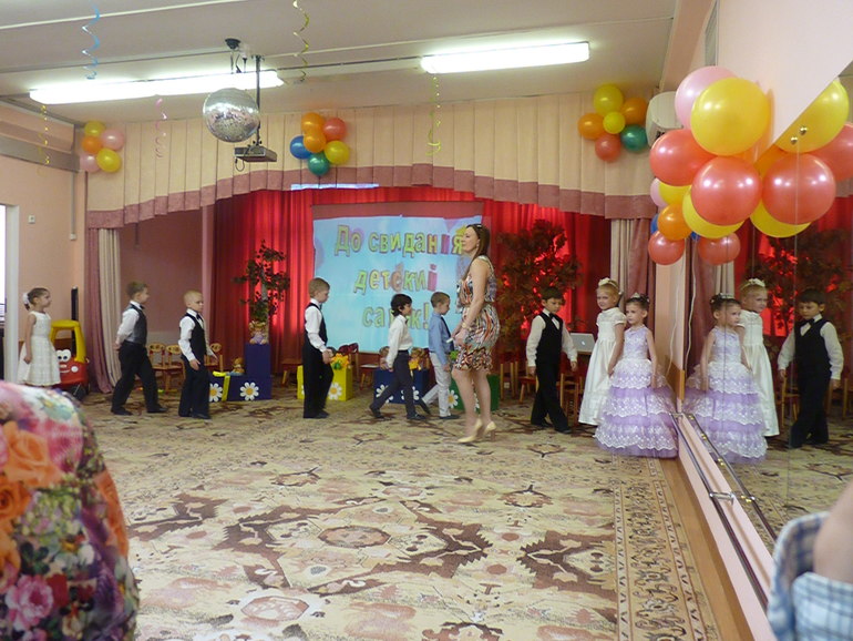 У нас с самого основания заведено в детском саду на выпускной дарить подарок саду (раньше это были ёлочки, которые торжественно высаживали, когда у меня выпускалась старшая, мы дарили книги для малышей), а также подарки всему персоналу (вплоть до дворника и прачек), отдельно подарок заведующей и украшать самим зал.