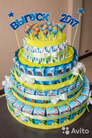 еще хотела тоже торт из соков-барни и т.д. сделать, но передумала. Один торт на стол поставил, развяза и растащили всё быстренько. Совсем не интересно как-то...Эта идея хорошо на ДР все-таки.