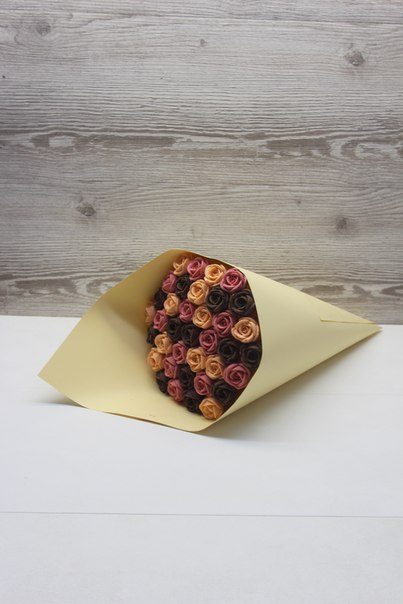 Розочки из вкусного шоколада на палочках, которые сложены в букет)