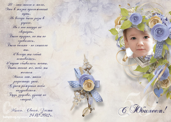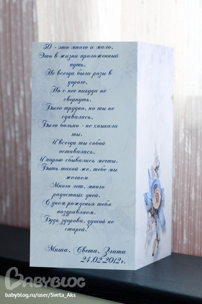 Законченные проекты (Скрап-альбомы, календари и пр.)Открытка была подарена свекрови на юбилей. 50 лет.