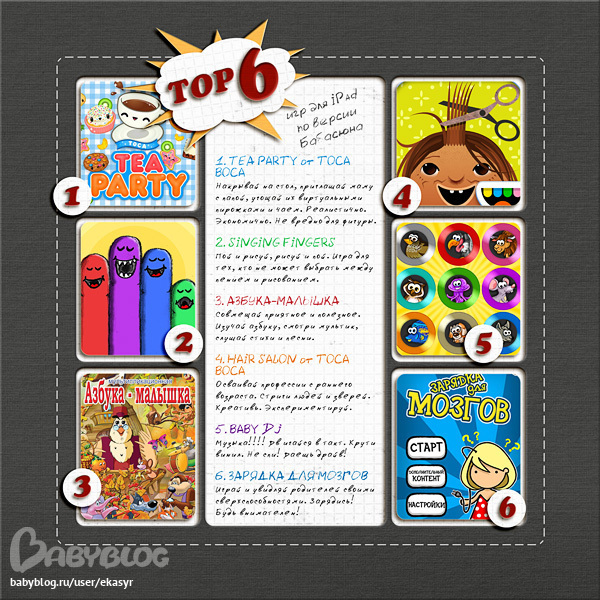 Чтобы как-то оставить в памяти эту нашу маленькую страсть, сделала страничку с любимыми Алесиными играми для IPad :))