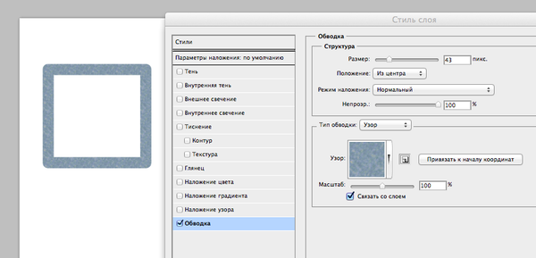 тут в просто заходишь в свойства слоя, и ставишь обводку ну в 6-10 пиксилей, указываешь цвет и фактуру. Все.