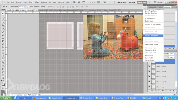 А так все фото берешь, берешь фигуру - квадрат. Ставишь на фото, маштабируешь как надо, выделяешь слой с фигурой, инвертируешь и удаляешь лишнее с фото. Остается квадрат фото. К нему добавляешь вышеописанный слой.