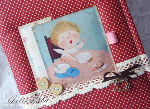 Рассказы об успехах (победы, награды и т.д.)Кулинарный блокнот с ангелочком - формат А5, 120 тонированных в кофе с ванилью листов, три разделителя. Обложка мягкая за счет слоя синтепона, обтянута американским хлопком. Украшен кружевом, подвеской в виде чайничка)))