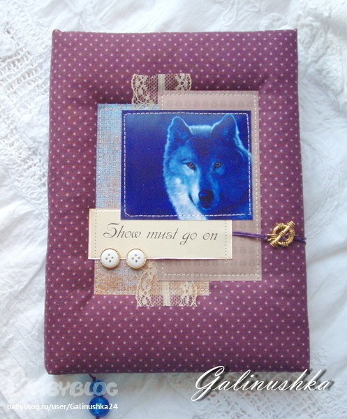 Из пожеланий заказчицы - картинка с полуночным волком в синих оттенках, надпись "Show must go on" и фиолетовые оттенки обложки.
