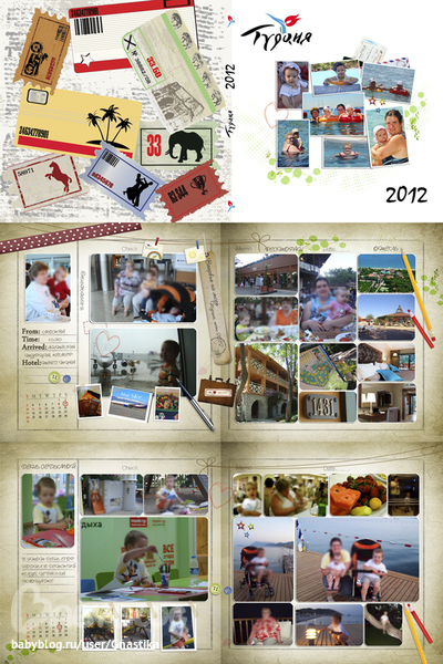 Шаблон взят из psd-набора travelbok, который переделан под размер фотокниги, смещены элементы. В целом взяты только подложки страниц, линии, пара картинок и идея.