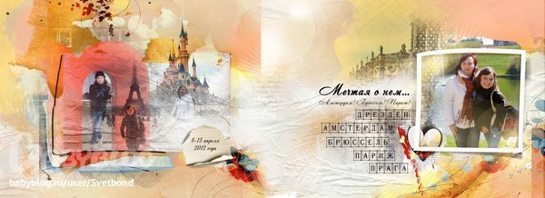 Ко мне обратилась моя недавняя знакомая Марина, познакомились мы как раз по поводу фотографий и фотоальбомов, для ее дочери Дашки и племянницы Маши я делала одну из своих самых первых фотокниг. А сейчас она попросила сделать для них небольшую фотокнигу, чтобы сохранить их фотографии из поездки в Европу. Фотографий, на удивление, оказалось очень немного, буквально по 2-3 из каждого города... И я решила попробовать сделать книгу нового формата 29 на 19 из серии слимбуков сервиса Цифролаб. На каждый город получилось 1-2 разворота (в зависимости от количества фотографий), также Марина прислала подробный комментарий к каждому городу. Вот что у меня в результате получилось. Покажу обложку, а остальные развороты можно увидеть в моем блоге.