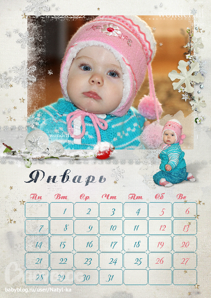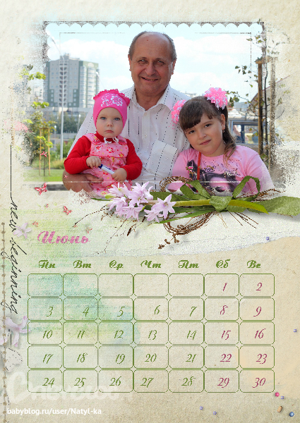 СтраничкиВот и мой первый скрап календарь. Осталось еще обложку сделать! Не могу придумать названия:( Календарь семейный, в нем дети внуки и близкие люди. Какие у кого идеи с названием?