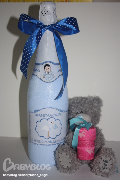 Ну и по желанию возможно добавить подарочную бутылку шампанского! (Мишка в комплект не входит)