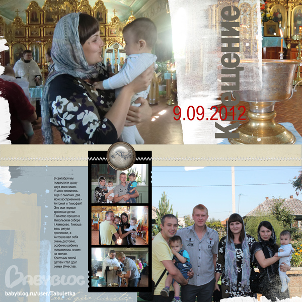 СтраничкиОсторожно пробую на ощупь шаблоны Анны Аспенс, пока только пробую, без креатива со своей стороны. Вчера родилась страничка с Крещения 2х мальчишек, которым я стала крестной!!!!!!!!!!!!!!!!!!! Ура! Я впервые крестная и сразу двоим деткам!!!!!!!! А сегодня вспоминала про поездку в Итат - на родину нашего папы.