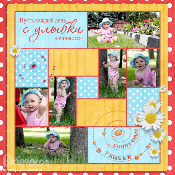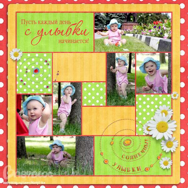 Вот собственно исправленные варианты. Сделала с голубой и зеленой бумагой для сравнения. Нравится и так и так, но пажалуй, с зеленой бумагой повеселей. А с горошком вы угадали, сразу выигрышней страничка смотрится!
