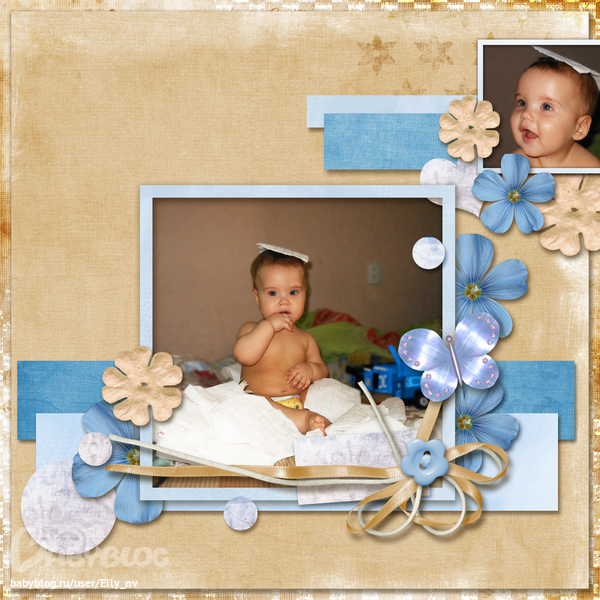Вот если вы кадрирует фото так, что у вас останется только лицо без салфетки на голове и беспорядка на заднем плане, то будет нежное, согласна, потому что личико у малыша очень сладенькое. А так ничего кроме шуточного и забавного в голову не приходит. И дело не в моем вкусе. Просто я смотрю на работу и у меня неодумение, я не могу понять причем тут цветочки и ленточки и салфетки на голове. В этом и есть отличие скрапбукинга от фотографий в рамках. Скрап-странички рассказывают историю, передают сюжет и настроение. А здесь они не состыкуются.