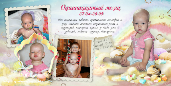 Законченные проекты (Скрап-альбомы, календари и пр.)Здравствуйте! Наконец-то я завершила работу над своим последним проектом: детской фотокнигой для очень красивой девочки Арины. Она создавалась достаточно долго, потому что в моей жизни происходили и происходят большие изменения, отнимающие массу сил и времени, но вечерами, открывая фотошоп, я отдыхала, занимаясь своим любимым делом. И вот что получилось: книга Премиум 25*25 см. 19 разворотов. Желаю Арише здоровья, радости и новых умелок!