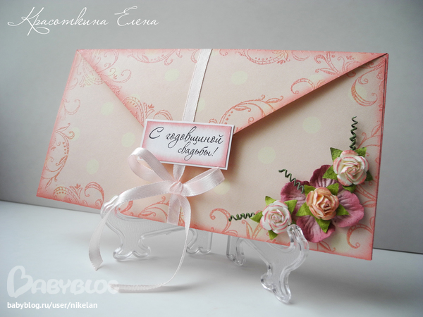 Девушка заказала для друзей на годовщину свадьбы конверт для денег, т.к. они решили презентовать именно их, но еще хотелось им это сделать красиво!