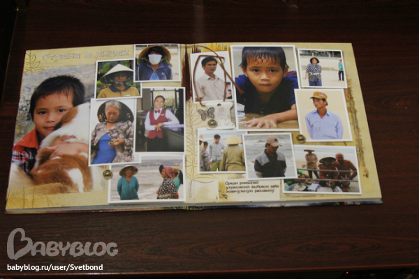 Законченные проекты (Скрап-альбомы, календари и пр.)Посчастливилось работать с замечательными фотографиями - о путешествии во Вьетнам. Огромный слимбук на 40 разворотов, формат 30 на 30, получился очень ярким и интересным... Здесь покажу несколько фотографий готовой книги, а посмотреть полностью макет и много фотографий можно в блоге