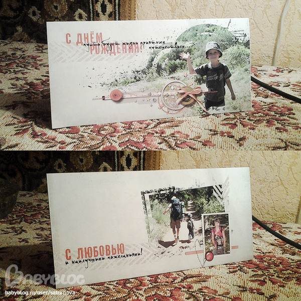 Законченные проекты (Скрап-альбомы, календари и пр.)Люблю я их делать, а тут и повод - ДР свекрови. Сдалала открытку с любимыми внуком, сыном и невесткой :-))))