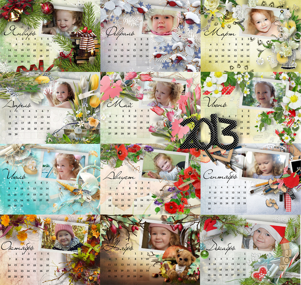 Законченные проекты (Скрап-альбомы, календари и пр.)В прошлом году я делала что-то подобное. В этом решила повторить, ведь так приятно, когда утро в офисе начинается с улыбки твоего ребенка :)