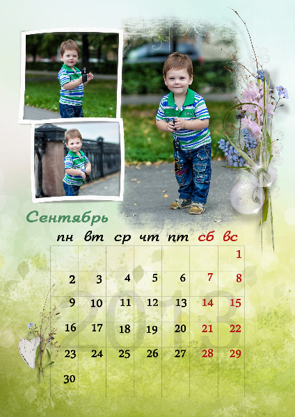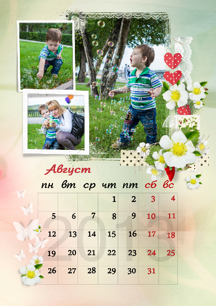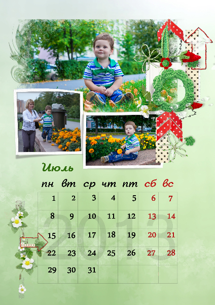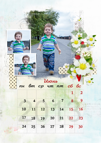 Законченные проекты (Скрап-альбомы, календари и пр.)Для себя календарь в этом году не делаю. только на заказ, и уже мне плохо от них (календарей)... Вот один.... Для клиентки. Фотографии были с одной фотосессии летней. Поэтому не разгуляешься. но все же))