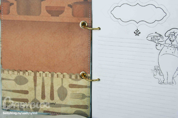 Кулинарная книга-"шоколад")))) Использовала:ткань хлопок, синтепон, скрапбумагу,ленту, пуговицу, тесьму, кружево, подвеску, вощёный шнур,цветы,вырубку, брадсы.Блокнот застёгивается на пуговицу.На обложках кармашки, распечатаны всем известные кулинарные странички)))