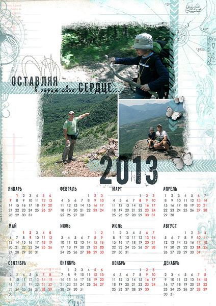 СтраничкиЕще один календарь, для брата. Этим летом мы с детьми ходили в небольшой поход, вот он и просил сделать календарь с походными фотками.