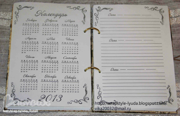 Календарей целых аж 6 штук, на каждом можно отмечать разные занятия))))Странички разных видов,есть даже странички с нотным станом: