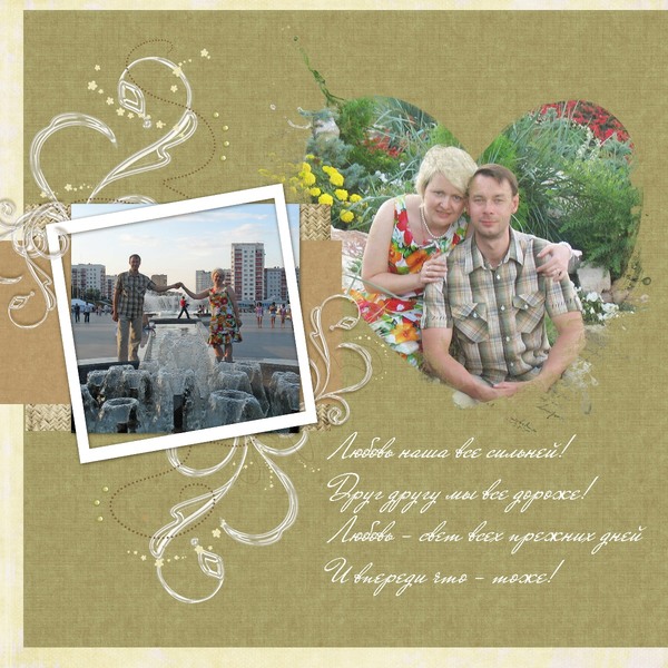 Не судите работу слишком строго, ведь я практически впервые создала скрап-страничку (был опыт коллажей в шаблонах SPC international. Creative Album, календаря, да еще кое-какая мелочь на уровне чайника :-) ).