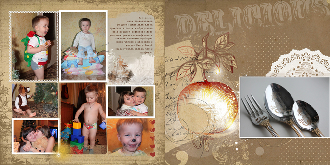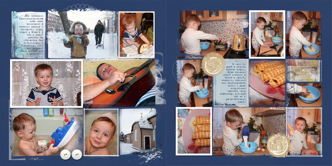 Лена,мне очень нравится.Удачные шаблоны,фон хорошо подобран,элементов не много(делать будет не сложно)...А фотографии-супер.Долго рассматривала!!!Так интересно...Запомнились...где ты в хоре поёшь,где с сестрой обнимаешься,муж играет на гитаре,Вовчик делает вафли...Очень здорово!!!