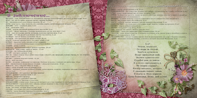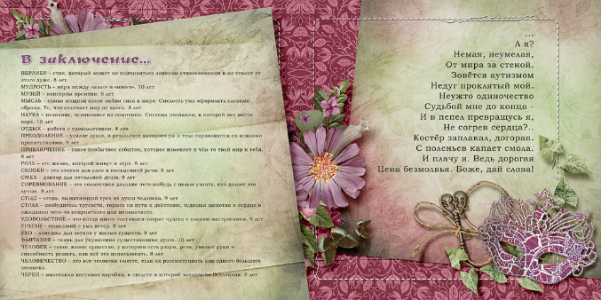 Сочинение на заданную темуДевочки, вот думала я думала над нашей книгой для Сони. Ведь начиналось все так просто...А теперь это уже книжка на продажу. И мне кажется, что хорошо было бы, чтоб в ней были все афоризмы Сони. Но, если делать разворотами оставшиеся то, во-первых, книга будет огромная, во-вторых, надо снова искать время. А со временем у всех сложности... В общем, выношу на ваш суд свою идею и ее исполнение: