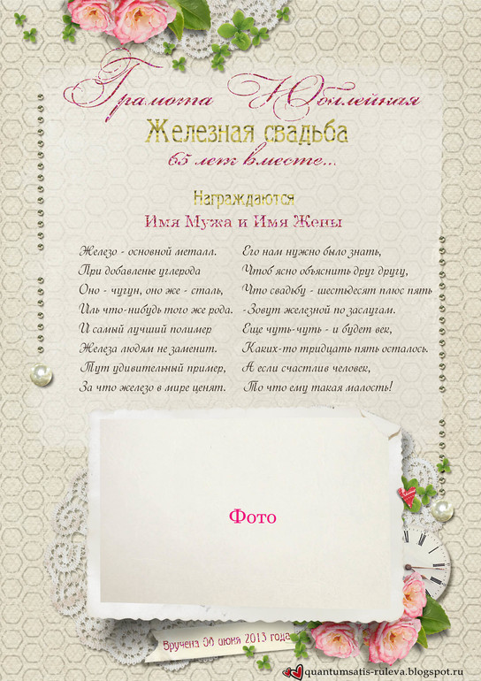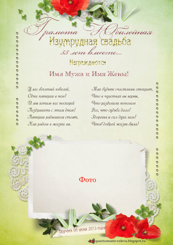 Кроме книги, я делала для этой свадьбы и ещё кое-что - дело в том, что две супружеские пары среди гостей отмечают в этом году очень солидные годовщины! Молодым хотелось это отметить и вручить памятные грамоты.