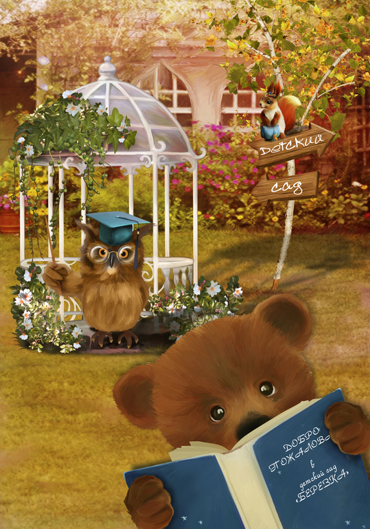 Тем не менее, детский сад был построен и открыт. Много помогли обустроить родители деток, но основная часть оформления легла на плечи всё той же "заведующей-первопроходца"... Ей в помощь я предложила свои услуги в оформлении "Информационного стенда": ознакомительный лист, режим дня, объявления, меню, сетка занятий и т.д...