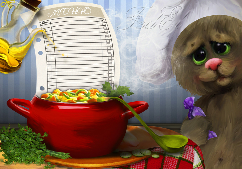 Симпатичный котик! обожаю этот наборчик! там столько много детелей! а меню планируется подписывать на этом шаблончике? или будут внизу кормашек для вставки ежедневных листочков меню (который подписываеюся и утверждается)!?