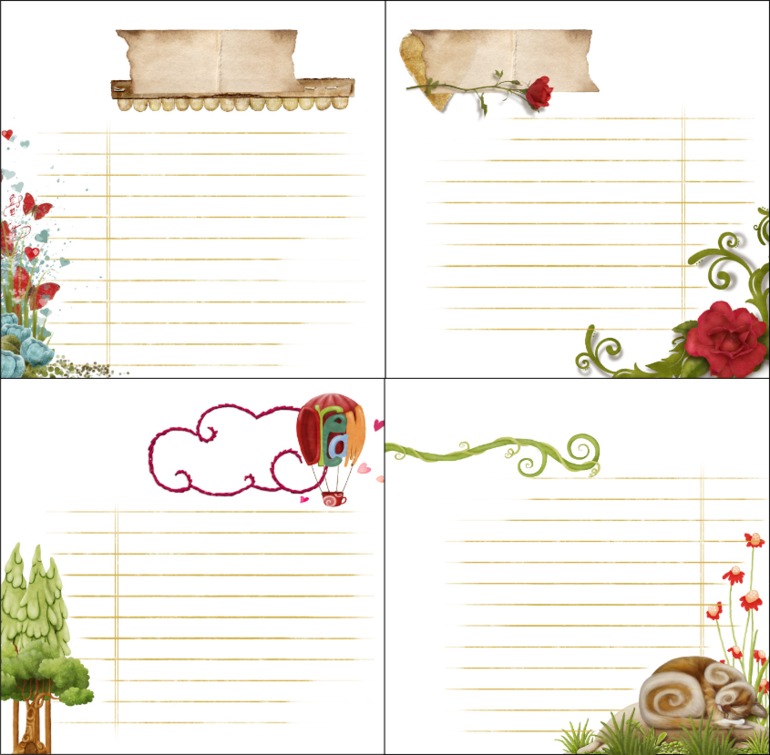 Развороты тоже цветные, выполнены в 4 вариантах, прошиты хаотично -что как попало, то и сшивала