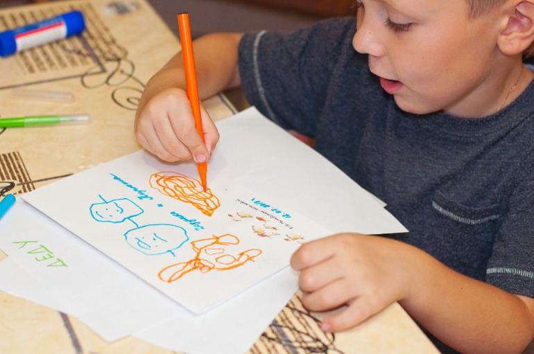 А дальше "работал" один Кирилл: он рисовал на внутренней и задней стороне открытки (специально оставленной для этой цели). Рисует он плохо, но разве это важно? главное, в рисунки он вкладывает всю свою душу!