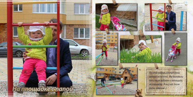 Можно немного фото высветлить(особенно с колясочкой)и сачок положить на фото, потому что от него тень объемная ))) И некоторые фото можно обрезать, а то сильно много самого дома и гравийки. Но это так мелочи )))