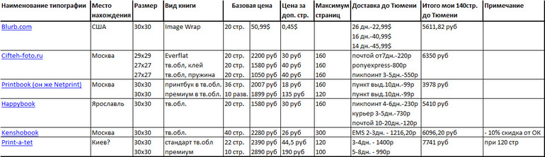 Я тоже делала обзор, когда выбирала себе типографию )Мой обзор типографийПо качеству печати очень хорош еще Dream albom, там главный плюс фиксированная цена книги по разворотам (два года назад было от 100 до 120 разворотов 5 тыс. руб.), выгодно печатать, когда у тебя скажем 119 разворотов ) а если 101, то уже дорого.