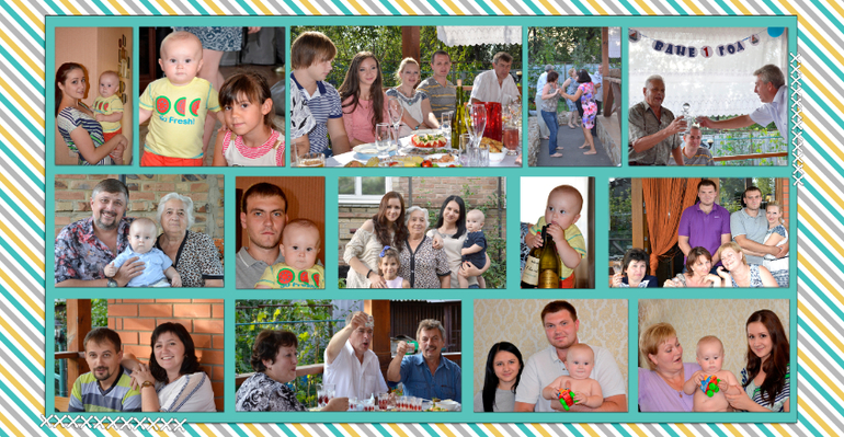 я сама новичок в скрапе, не люблю раздавать советы, так как не профессионал:) но мне кажется, что да — фон пестрый, рябит и отвлекает на себя внимание от фото. и если размер 23х23, то наверно фото на последнем развороте в таком количестве не очень хорошо будут смотреться — слишком мелкими..