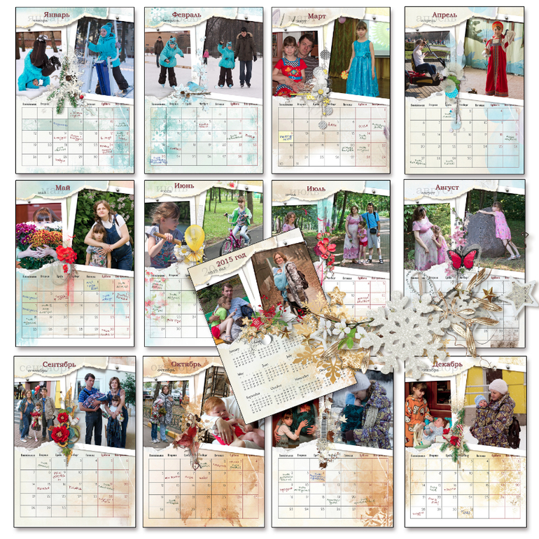Законченные проекты (Скрап-альбомы, календари и пр.)В этом году я себя за уши тянула, заставляя сделать календарь. Даже мелькала кощунственная мысль забить и купить готовый. А все потому, что времени нет, фотографий толком нет и мне очень нравится мой прошлогодний вариант (ха, не скромно так!). И было решено сделать вариацию на тему. )))