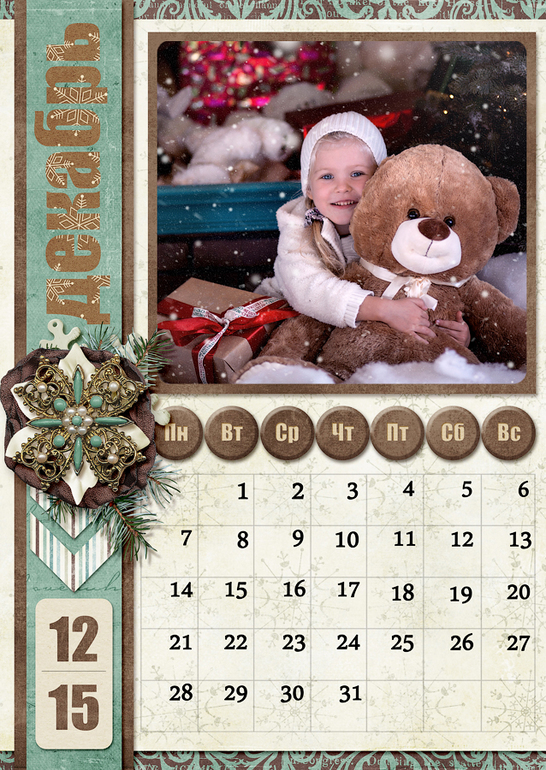 Замечательный календарь, интересно построен!!! И декор красивый, и обозначения дней недели, очень здорово!!!