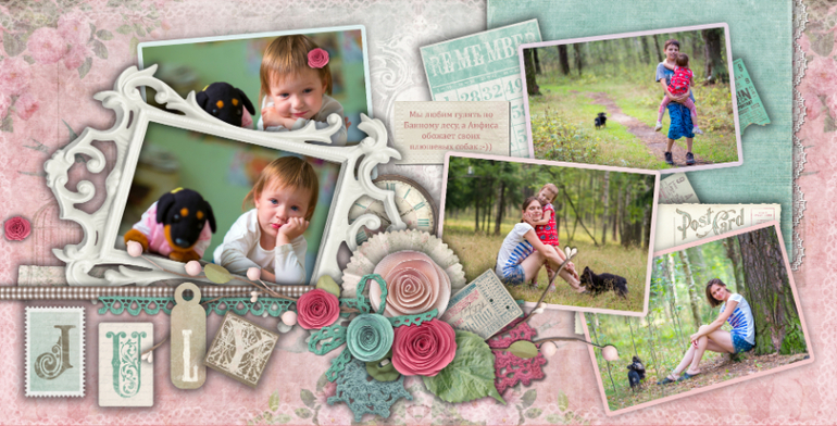Фото в рамке на третьем развороте где шляпа на глазах вообще сказка!!!! Очень понравилось и рамка вокруг нее)) по мне так интересные развороты получились!!! Да в ярком оформлении заиграли бы по другому но иногда хочиться спокойного оформления. И ваши оформление очень даже неплохо оттеняет фотки. Мне очень нравиться на последнем развороте часть страницы с щенком просто очень подходит оформление. А вот второй Разворот у меня с фото тоже не гармонирует)))