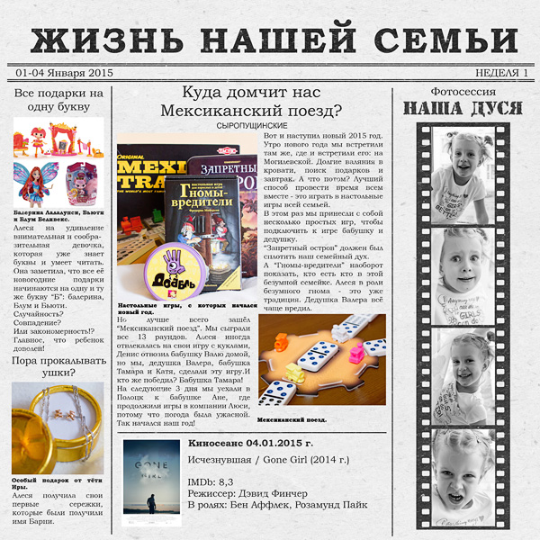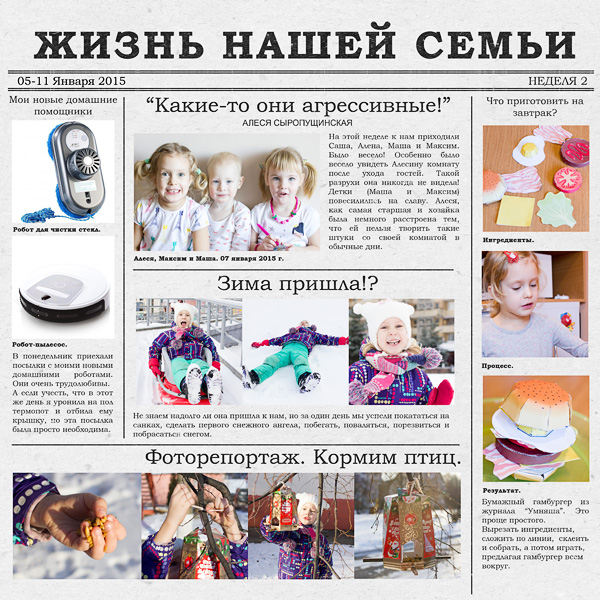 Итак, представляю Вашему вниманию мой проект-газету "Жизнь нашей семья", неделя 1 и Неделя 2, включая спецвыпуск "Друскининкай 2015".