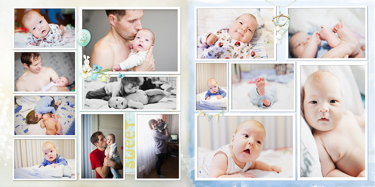 Страничкив Семейную книгу. Тяжело почему то было делать...Наверно потому что совсем маленького фотографий мало...Выбирала из того, что было..