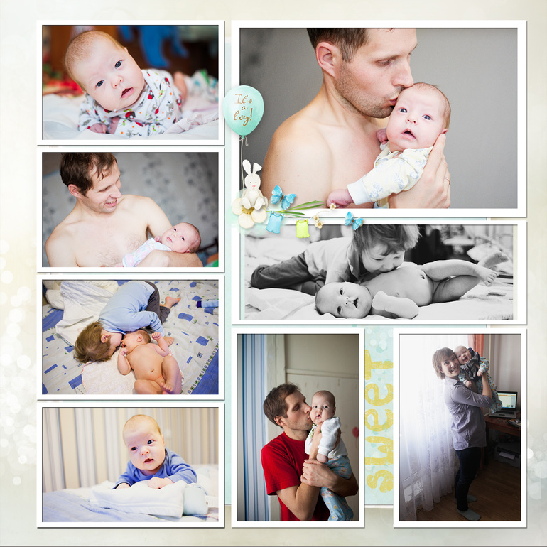 в Семейную книгу. Тяжело почему то было делать...Наверно потому что совсем маленького фотографий мало...Выбирала из того, что было..