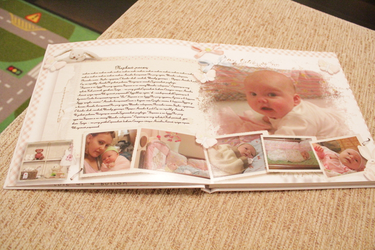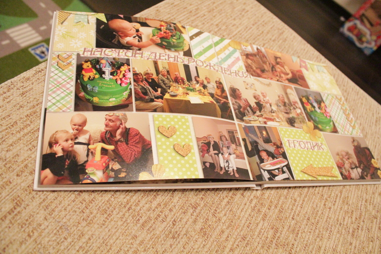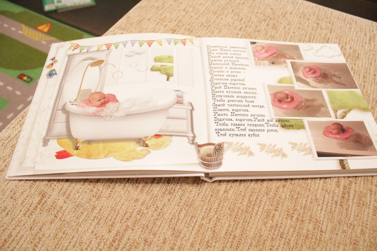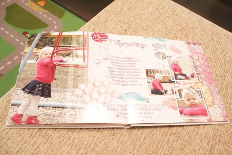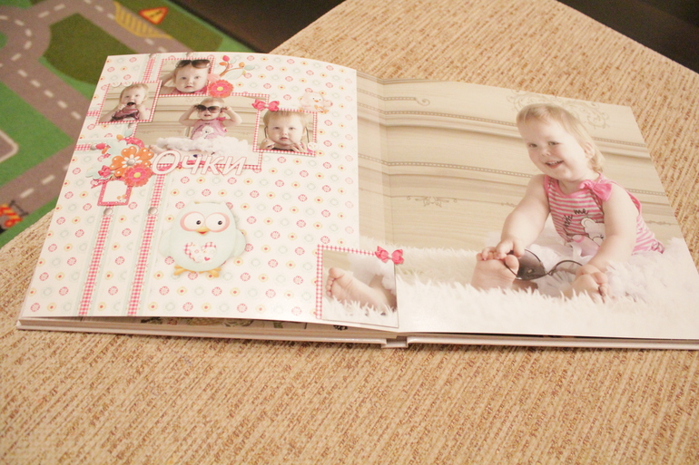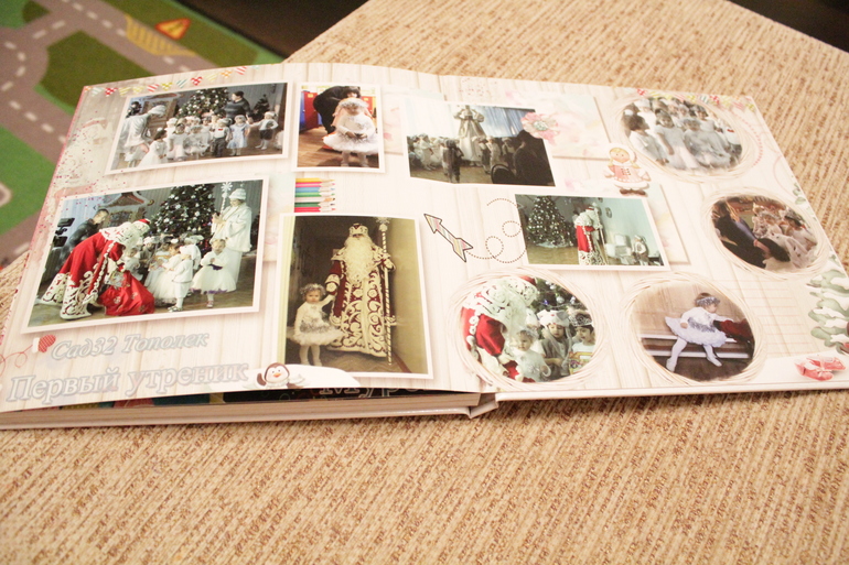 Законченные альбомыФормат 25*25. Троропилась чтоб успеть к 50% действовавшей до 5 января. И не нашла в хорошем разрешении 3 разворота в итоге загрузила скаченные с инета ...качество плохое, и один разворот на фото не видно кисло зеленого цвета ушел в желтизну при печати обидно(((( А еще припечати все немного укрупнилось, не правильно расчитала размер слегка но не страшно. Все с опытом приходит))) А так качество сказка 33 разворота о доче с рождения до 2