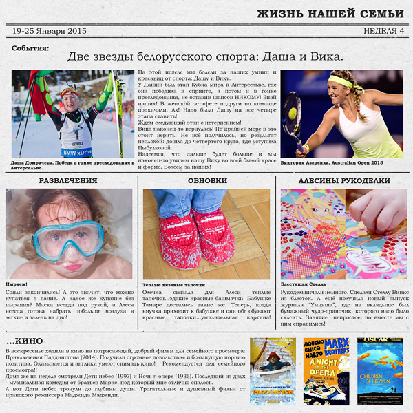 Чумачучий проект! Я ж теперь и не усну!) Жду с нетерпением следующего номера вашей семейной газеты!)