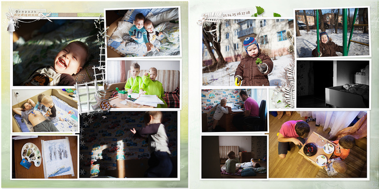 СтраницыПоследняя неделя февраля!Урраа))))))У нас какое то пограничное состояние на улице...То снег, то дождь...то гололед, то лужи...Еще и папа наш уехал на прошлой недели в командировку..Но, все таки я это сделала!Закончила февраль!))))Покажу страничку и разворот.
