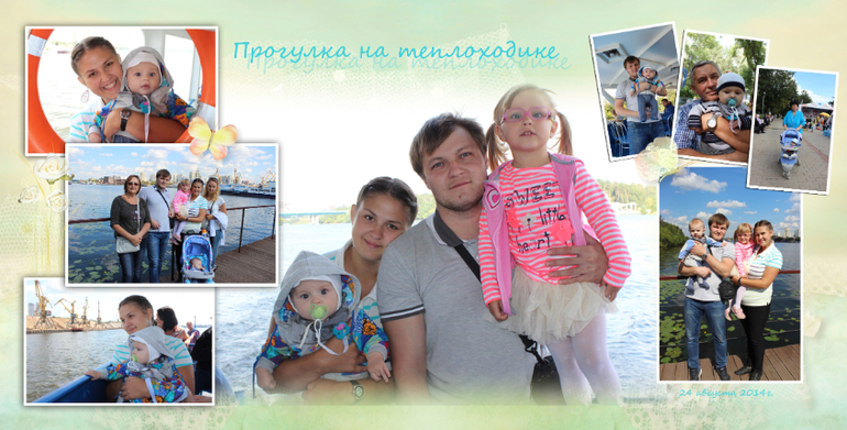 в своей первой книге я тоже брала рукописный шрифт с завитушками. Сейчас когда прошло время и текст позабылся — тяжеловато читать. И обязательно проверьте центр разворота, может есть возможность немного сдвинуть фото, например на 6, 19.