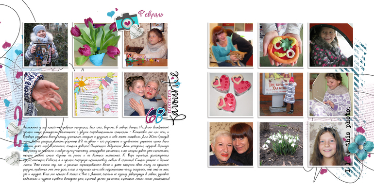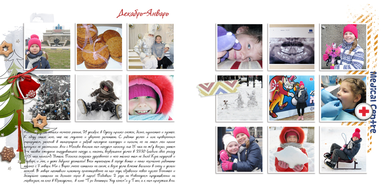 Девочки, как же я рада, что начала проект! Пусть не так, как я хотела и не такой, но он есть! И сколько удовольствия от самого процесса: начиная от подборки фото и заканчивая подборкой элементов. Мои в этом году лояльно подошли к критике (все им интересно, все нравится, только сетуют, что мало разворотов))).