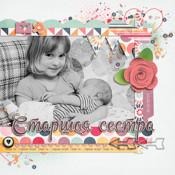 Прикольно, на руках держит))) у нас старшая пока соску дает снгодня отвернулась а она ее пихает (качает) из стороны в сторону успокаевает))) Развороты красивые, в вашем стиле)) а что за ширифт Я такая колоритная))