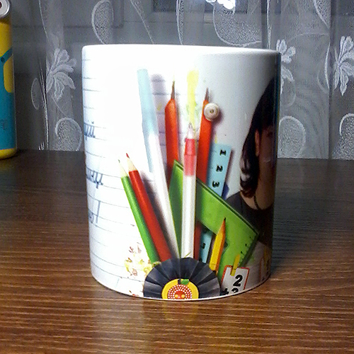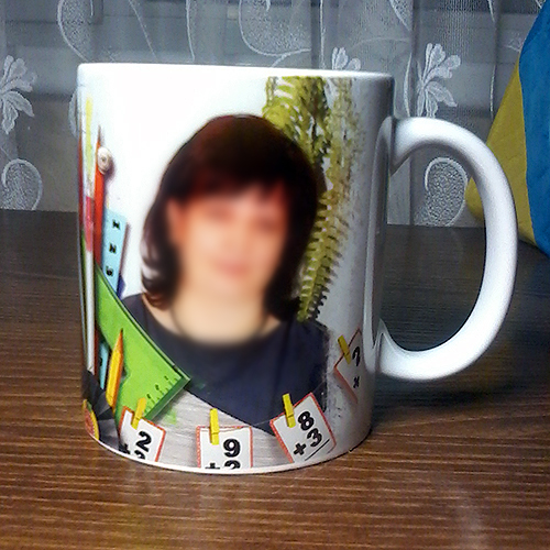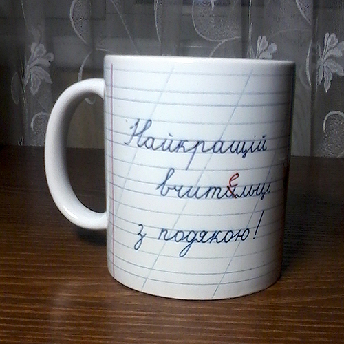 КАкой хороший подарок! И главное, сын поучаствовал. Уверена, учительнице будет очень приятно получить кружечку!